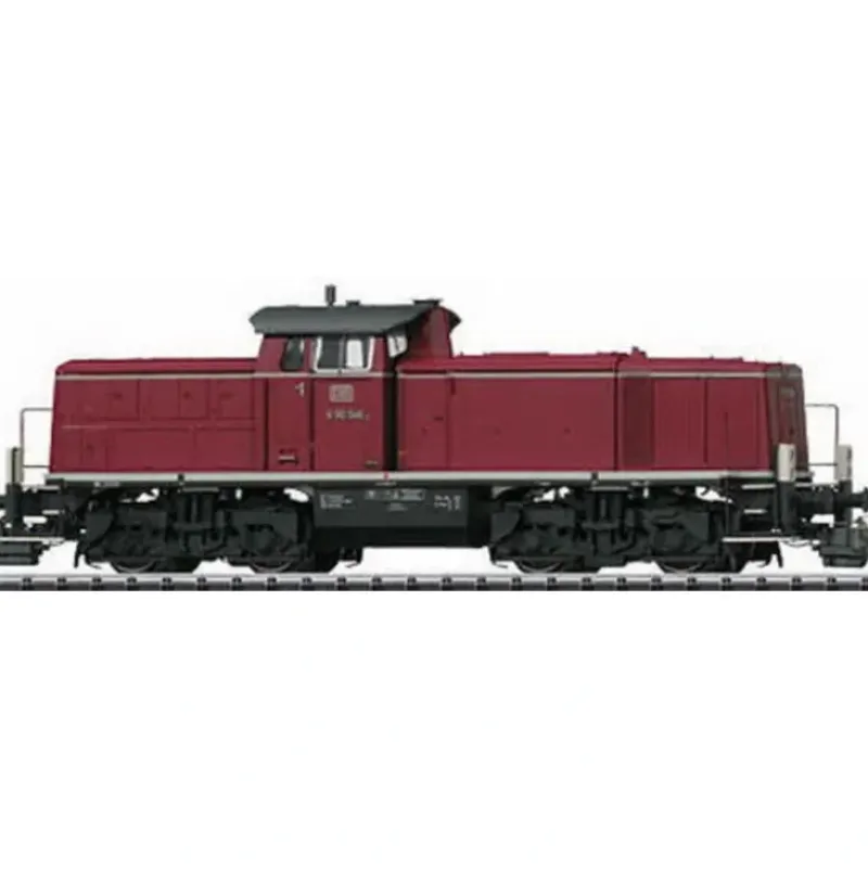 This is a Trix 22290 HO Scale Class V 90 Heavy Switcher w/Telex Couplers – DCC Equipped German Federal Railroad DB (Era III, red, black) Features die cast metal frame and body, Telex couplers, DCC/Selectrix decoder, powerful can motor, four axles powered, directional lights and traction tires. Features die cast metal frame and body, Telex couplers, DCC/Selectrix decoder, powerful can motor, four axles powered, directional lights and traction tires.