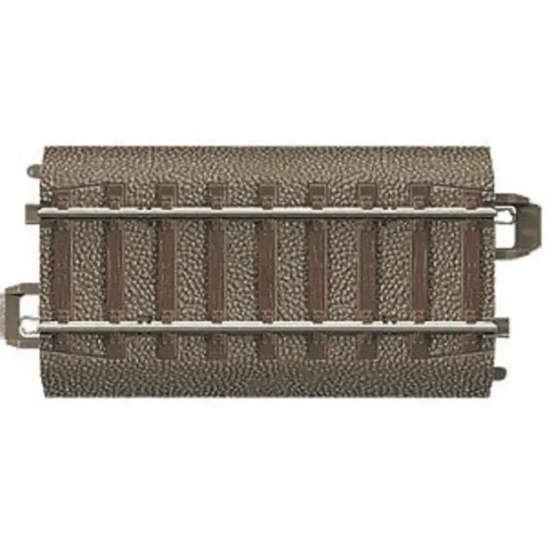 This is a Trix 62071 HO Scale C Track Straight 70.8mm (2-13/16). Model: Length 70.8 mm / 2-13/16. Removable roadbed slope. This track is used on both branches of the wide radius turnouts and wide angle crossings.