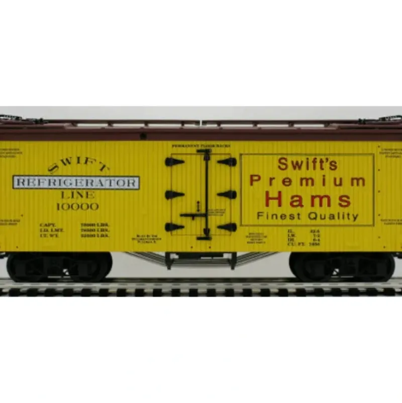 This is a USA Trains 16307 G Swift’s Preimum Hams Wood Refrigerator Car with Trussrod Underframe.
