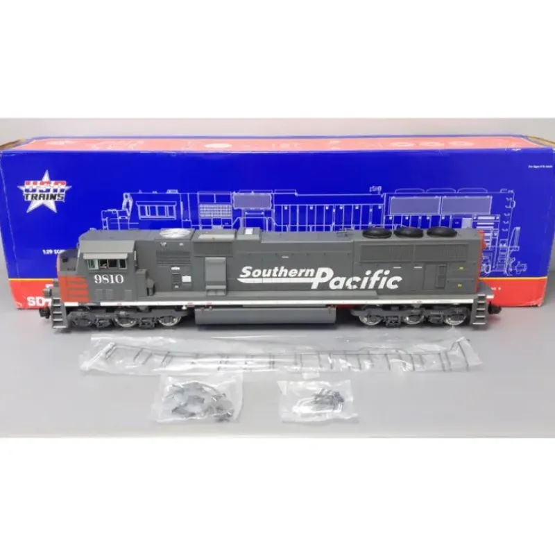 This is a USA Trains 22603 G Southern Pacific EMD SD70 Mac Powered Diesel Locomotive. These engines feature dual-powered six-wheel trucks, fan-drive smoke exhaust, alternating ditch lights, detailed cab interior with engineer, lighted numberboards and metal handrails.