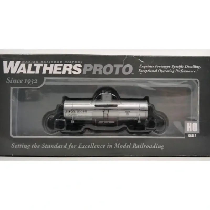 This is a Walthers 920-100525 HO War Dept Quartermaster Corps USQX #10040 – Type 21 ACF 10,000-Gallon Tank Car. Limited Edition – One Time Run of These Roadnumbers, Thousands of Cars with this Common Design Served North America for 4 Decades, Used to Haul Gasoline and other Petroleum Products, Factory-Installed Grab Irons, Detailed Underbody and Air Brake Gear, Ultra-Smooth Rolling Metal Axles & 33 Wheelsets, Proto MAX(TM) Metal Knuckle Couplers, 50-Ton Spring Plankless Trucks, and AB Brake Gear & Details.