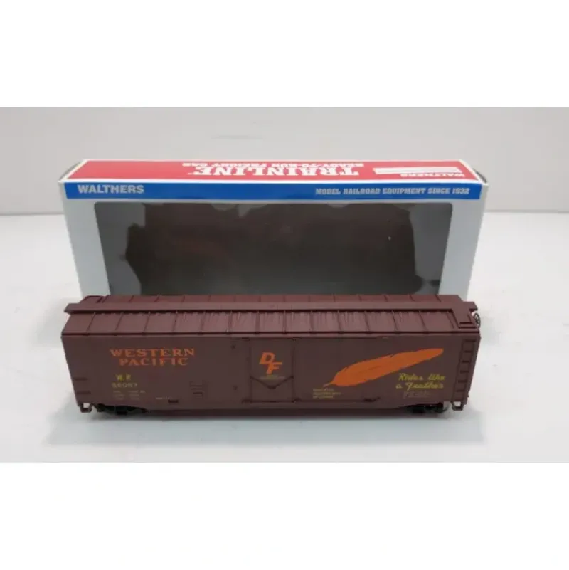 This is a Walthers 931-1675 HO Western Pacific 50′ Plug-Door Boxcar – Ready to Run. Trainline freight cars feature RP-25 metal wheels for superior performance on all kinds of Code 70 and larger HO Scale track. With their added weight and wheel tread matched to National Model Railroad Association standards, wheels on Trainline cars are perfect for every HO railroad. Other features include molded details that stand up to handling during operation, realistic paint schemes for good looks and body-mounted magnetic knuckle couplers for reliable performance.