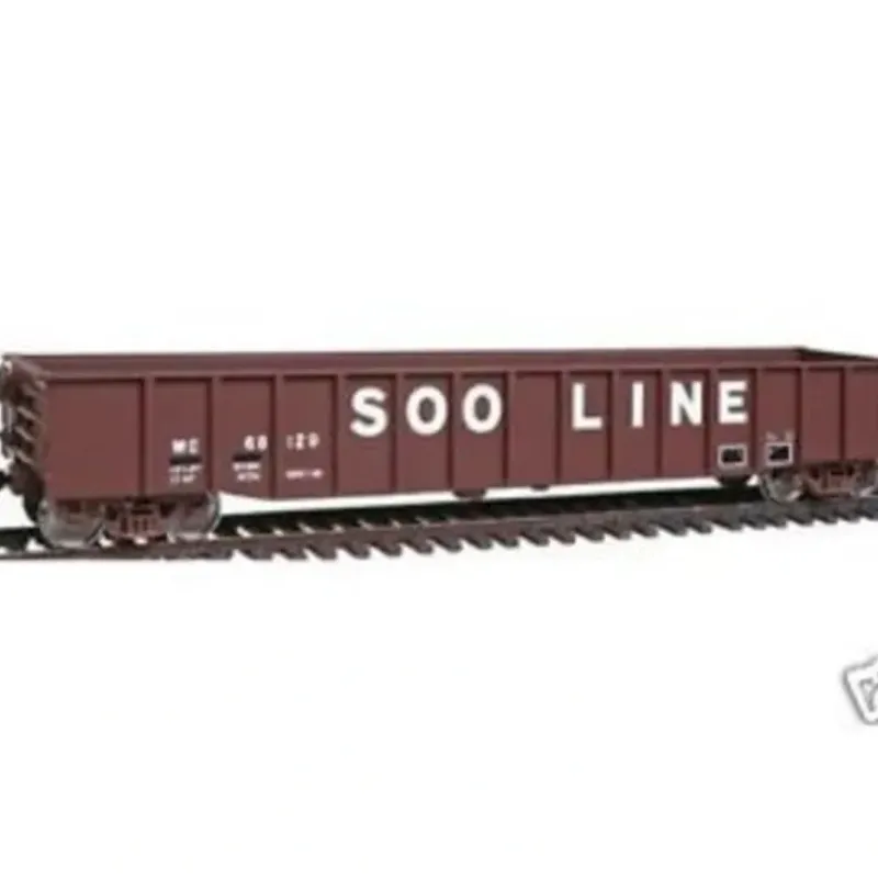 This is a Walthers 932-40269 HO 53′ Thrall Gondola WC/Soo Line #68129.