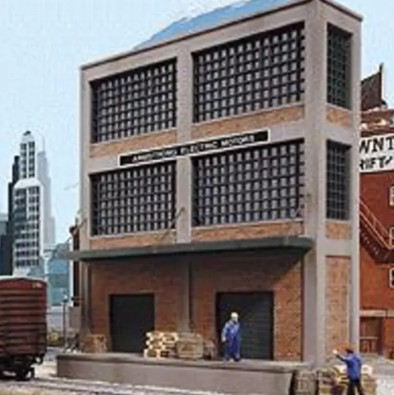 The Walthers Cornerstone HO Scale Armstrong Electric Motors Background Building is a great way to add an industry to your layout between your rearmost tracks and your backdrop. Like many big city buildings, this factory has a covered concrete freight car loading dock. Install a spur and add more operating fun to the small space between your layout and background scene. Great by itself or as a part of an entire complex along your background. Armstrong Electric Motors can be built in one of three different sizes: 16-5/8 x 1-1/2 x 6-5/8 42.2 x 3.8 x 16.8cm, 11 x 1-1/2 x 6-5/8 27.9 x 3.8 x 16.8cm or 5-3/8 x 1-1/2 x 6-5/8 13.6 x 3.8 x 16.8cm
