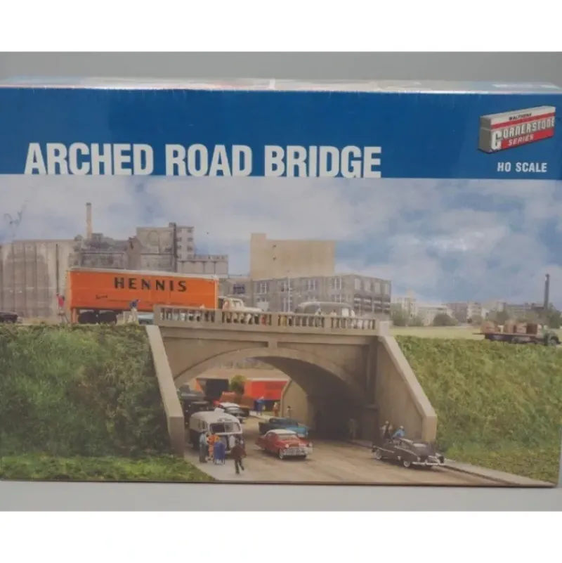 7-3/4 x 10-3/8 x 3-7/8 19.7 x 26.4 x 9.8cm Opening 4-5/8 11.8cm * Use with Brick, Concrete or Asphalt Street System * Fine Railings & Details * Fits Steam-Era to Present Day Perfect for any highway from the 1920s to the present, this single ar concrete bridge is typical of those built all over America. Handling traffic above and below, bridges like this were often constructed in areas where existing intersections were creating bottlenecks and safety hazards. Both the deck and the lower level are designed for use with any of Walthers Cornerstone Series Street Systems components, which are available to model brick, concrete or asphalt streets to fit a wide range of modeling eras.