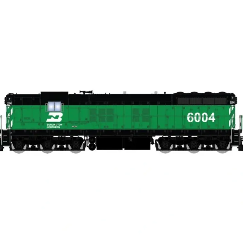 This is a Broadway Limited 4230 HO Scale Burlington Northern EMD SD7 with Sound& DCC – Paragon3 #6004 (Cascade Green, black, white).Features: New Paragon3 Sound & Operation System Featuring Rolling Thunder with Authentic Sounds and Prototypical Operation in both DC and DCC environments, Factory InstAlled Engineer / Fireman Figures, Variable Puffing Smoke Intensity and Timing, Locomotive Composition: ABS Body with Die Cast Chassis, Couplers: (2) Operating Kadee or Compatible, Compatible Tracks: Code 70, 83, 100 Rail, Equipped with Traction Tires, Minimum Operating Radius: 18 in or greater.