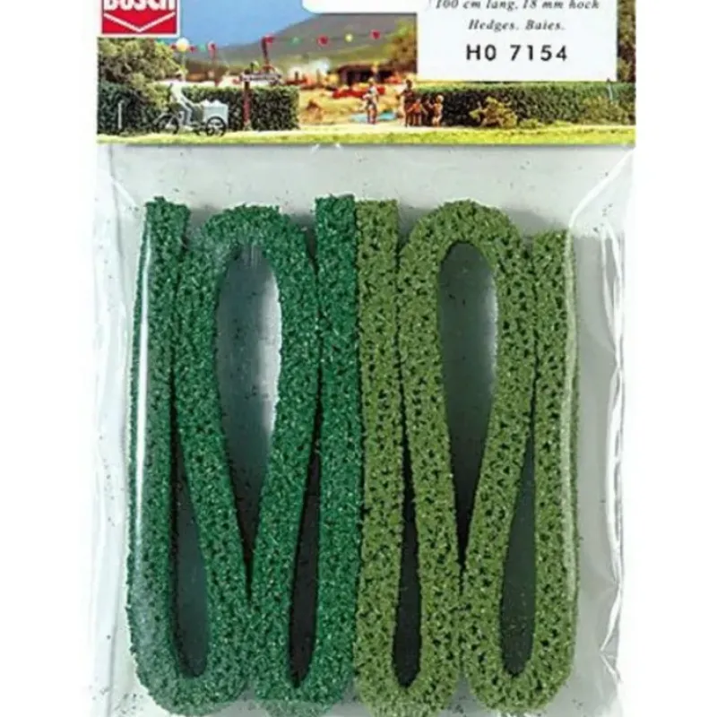 This is Busch 7154 Hedges 100cm x 18mm. 25-13/32 x 11/16 (100cm x 1.8cm).