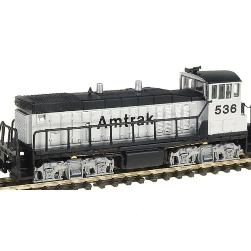 This is Con-Cor 2312 MP-15 Switcher AMTK #536. Diesel MP-15 switcher. Powered with Micro-Trains operating couplers. Amtrak #536 (silver with black). Con-Cor MP15s are ready for work on your layout. First introduced in 1974 and produced into the mid-1980s, the MP15 offered railroads a versatile locomotive that was at home in the yard and, because of its Blomberg roadswitcher trucks, could also pinch hit on the road. Featuring a new dual-flywheel-equipped drive, factory-installed Micro-Trains couplers and detailed plastic shells, these new models from Con-Cor are perfect for heading up your switchers and wayfreights.
