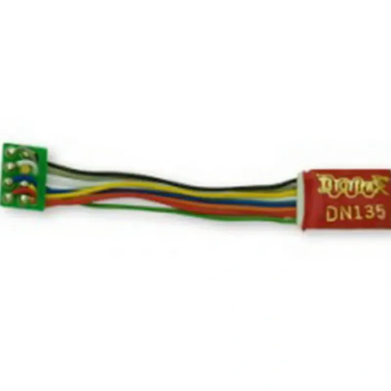 This is a Digitrax DN135PS N/HO Mobile Decoder w/ DCC 3.2″ Wires 3-Function 8-Pin 1A.