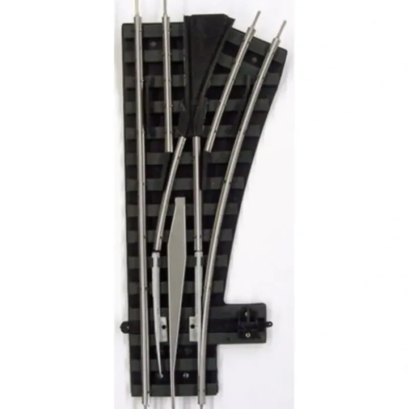 This is Gargraves 213 RH O-42 regular manual switch with tinplated rails. Our 042 switch matches our 42 inch curve sectional track and is ideal for switch ladders in your yards giving you track centers of 4.21 on your yard spurs. The switch comes with a makeup section to equal a O-42 curve length. Also available is a transition curve piece to bring your spur back parallel to the main line at 4.21 centers. The switch is 9.5 inches long.