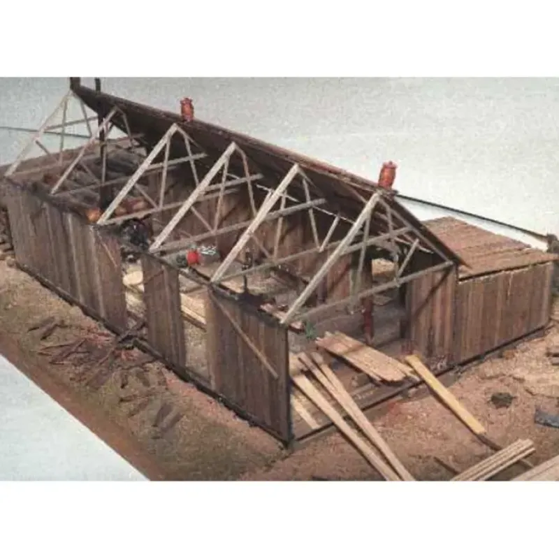 This is a JV Models 4021 O Scale Lucas Sawmill Building Kit – Scale 50 x 95′ 15.2 x 29m. This craftsman style kit has board on board construction over timber framing. Includes mill, log deck, machine shop, racks, benches and fire barrels. Quality pine and basswood. Full instructions with templates and color photo. Scale 50 x 95′.
