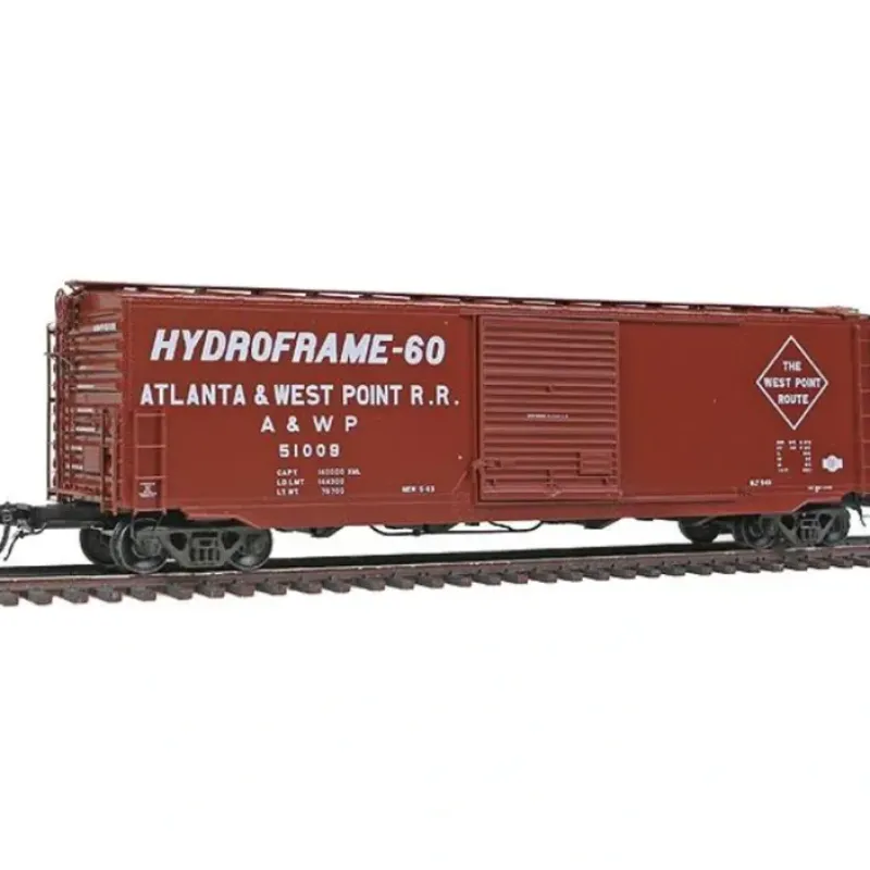 This is a Kadee 6348 HO Scale PS-1 50′ Boxcar with 9′ Door – Ready to Run Atlanta & West Point Railroad # 51009 (Boxcar Red) . This car features plastic construction, plastic trucks, metal wheels and axles, and knuckle couplers.
