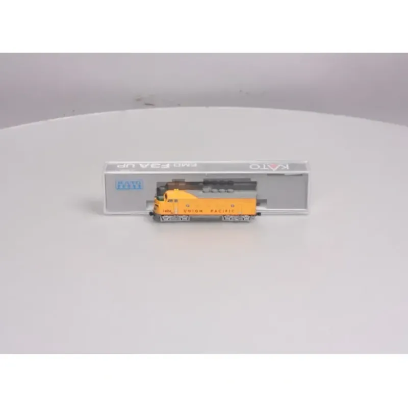 This is a Kato 1761112 N F3A, Union Pacific #1404. Features: DCC friendly mechanism, A-unit LED has directional headlights and illuminated number boards, Locomotives have a powerful five pole motor with all wheel electrical pickup and blackened wheels, KATO magnetic knuckle couplers, Drop in DCC compatible with the Train Control Systems, K0D8 series and Digitrax DN163K0B.