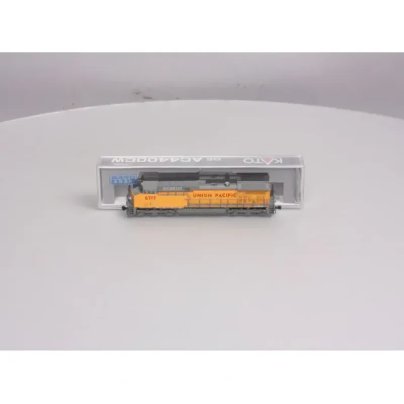 This is a Kato 17670371 N Scale Union Pacific GE AC4400CW with DCC #6717 (Armour Yellow, gray). Features include a five-pole motor with dual flywheels, a factory-installed DCC decoder for motor lighting control, fine decoration, directional LED headlights and Kato knuckle couplers.