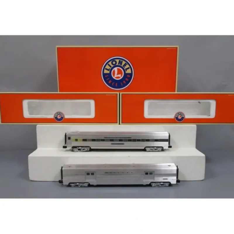This is a Lionel 6-25613 Santa Fe Super Chief 18″ Passenger Car Set. Fabulous 18 Aluminum Super Chief passenger cars are available to run behind the handsome Warbonnnet Alco PA A-A diesels. The Baggage is a “Railway Express Agency, Inc.” and the Sleeper is the “Blue Moon”. This set features highly detailed body construction, interior illlumination, and metal wheels and axles.