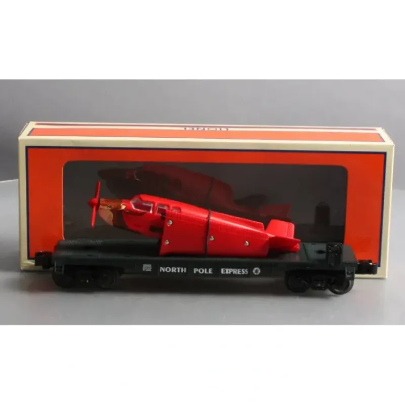 This is Lionel 6-26685 O North Pole Express Santas Plane On Flatcar. There are times that even reindeer are too slow for Santa!