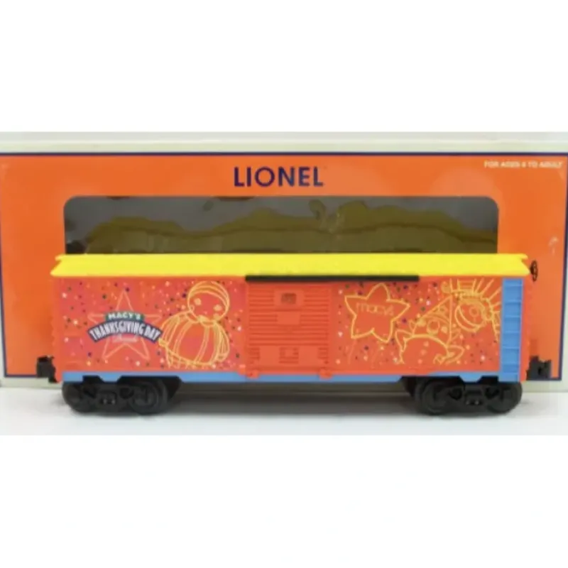 Here is a Lionel 6-39309 O Gauge Macy’s 2008 Boxcar. This car features die-cast metal sprung trucks, operating knuckle couplers, metal wheels and axles.