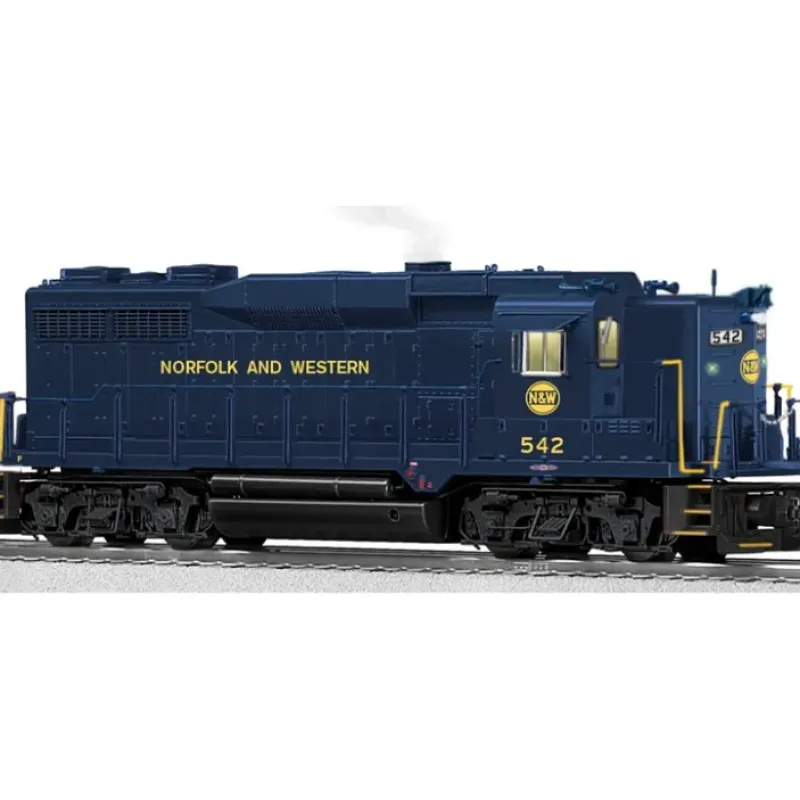 This is a Lionel 6-82137 O Norfolk & Western Legacy Hi-nose Gp30 Diesel Locomotive #542. GP30 Diesels The most distinctive of all of EMDs Geeps| the GP30 had a style all its own. Lionels latest release includes both low and full-height short hoods| plus AAR Type B trucks where appropriate for the road! Features:, LEGACY Control System – able to run on LEGACY, TMCC or Conventional control layouts, Odyssey II Speed Control with On / Off switch, LEGACY RailSounds including:, CrewTalk and TowerCom dialog, Six Official railroad speeds , Eight Diesel RPM levels, Quilling Horn, Bell (single hit and continuous), Sequence Control, Current speed and fuel dialog, Refueling sounds, IR Sensor equipped – works with LCS SensorTrack, Dual maintenance-free motors, Traction Tires, Refined Conventional Control mode with lower starting speeds, Front and Rear ElectroCouplers, Fan-driven smoke with adjustable output, Directional lighting, Marker Lights, Lighted cab interior with crew, Many separately applied metal detail parts, EMD Blomberg Trucks per prototype, Low short hood per prototype, Metal frame, pilots, trucks and fuel tank, Cab window glass, Engineer and Conductor figures
