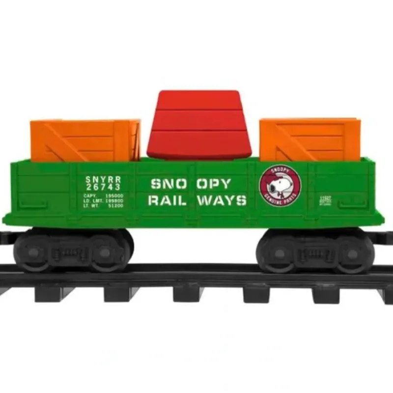 All aboard Snoopy Railways! This Gondola includes one of the most iconic props in both the Peanuts Comics and television specials, Snoopys famous dog house. A perfect add-on to the Snoopy Railroad G-Gauge Set Peanuts Worldwide LLC Features Fixed knuckle couplers Two crates and Snoopy’s dog house load (removable) Gauge: Large Scale/G Gauge