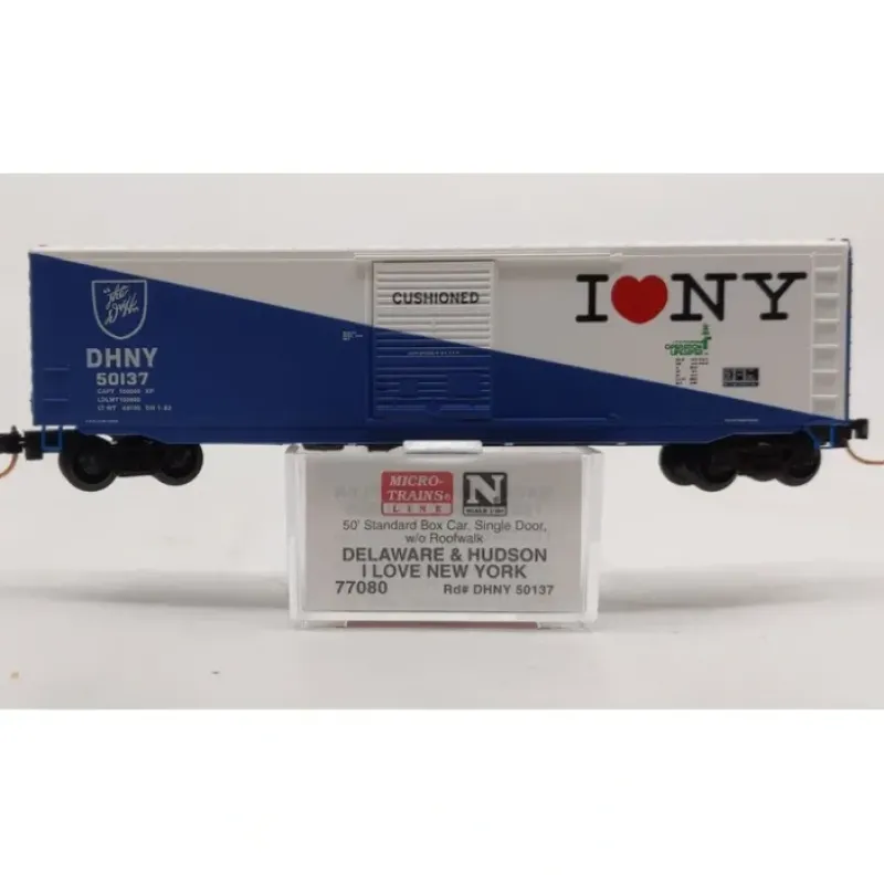 Here is a Micro-Trains 07700080 N Delaware & Hudson 50′ Standard Single Door Boxcar #50137. This car features a plastic construction, plastic wheels & knuckle couplers. Please check the photos for a detailed look at this item.