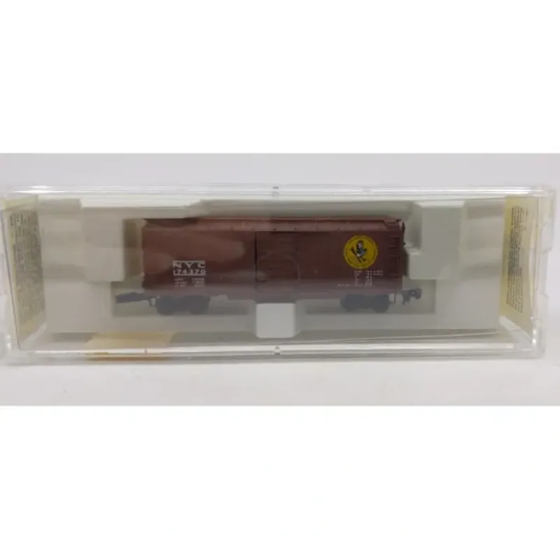 Here is a Micro-Trains 14117-2 Z Scale New York Central Boxcar # 174370. This car features plastic couplers, plastic wheels and a plastic body construction.