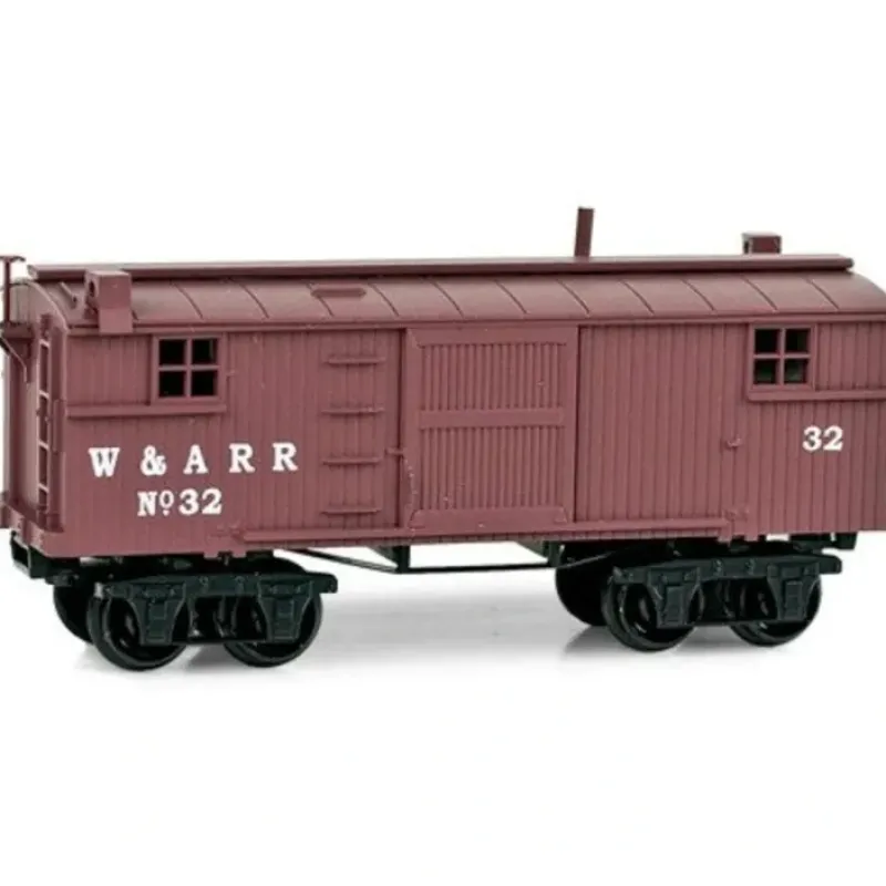 This is MicroTrains 15200020 26′ Cab W&A CW. Civil War era 26′ wood caboose (converted boxcar), ready to run, Western & Atlantic #32 (boxcar red). With a rigid-frame truck and simulated link-and-pin style couplers, these 26′ cars will be the most prototypical N scale models for modeling in the 1800s.