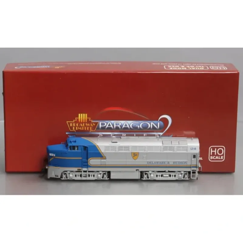 This is a Broadway Limited 4070 HO D&H Baldwin RF-16A Diesel Locomotive #1216 (Paragon2 Sound/DC/DCC Equipped).Features, ABS plastic body with heavy die cast chassis for maximum tractive effort, 5,pole can motor with skew wound armature, A unit length (coupler to coupler): 8, B unit length (coupler to coupler): 7.7, Locomotive Weight: Unavailable at this time, Many separately applied details such as handrails, ladders, horn, and brass bell, Operating knuckle couplers, Will Operate on Code 70, 83, and 100 rail, Recommended Minimum Radius: 18 Industry Leading Features:, All New Paragon2 Sound and control system for DC and DCC, Integral DC/DCC dual mode decoder for ease of operation, Industry best slow speed operation in DC and DCC, Functions are accessible in DC using the DC Master, Prototypical light operation with headlight and cab light, Authentic Baldwin Shark Sounds! Controllable in DC and DCC, All wheel drive and All, wheel electrical pick up, Factory installed engineer and fireman figures, Near brass caliber detail at a plastic price.