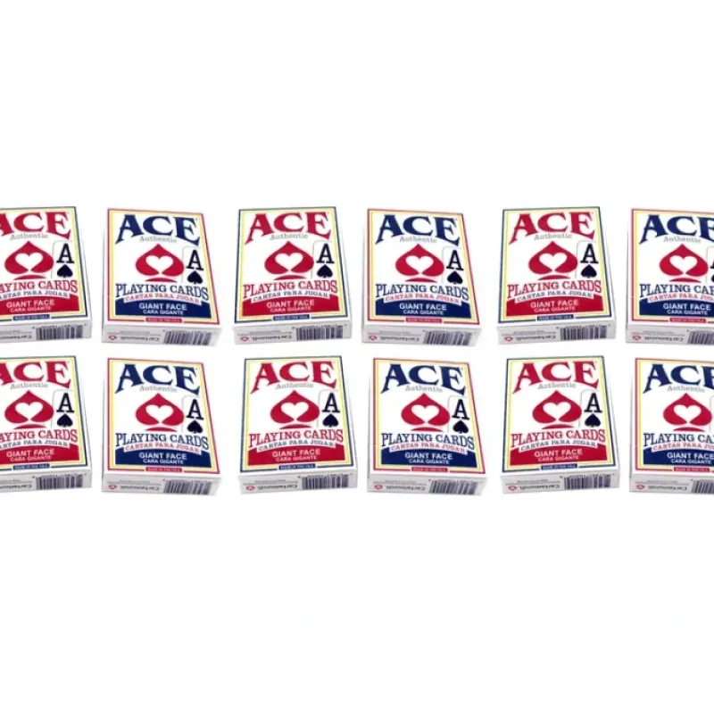 Ace Standard Size Playing Cards with Giant Faces – 6 Red Decks, 6 Blue Decks