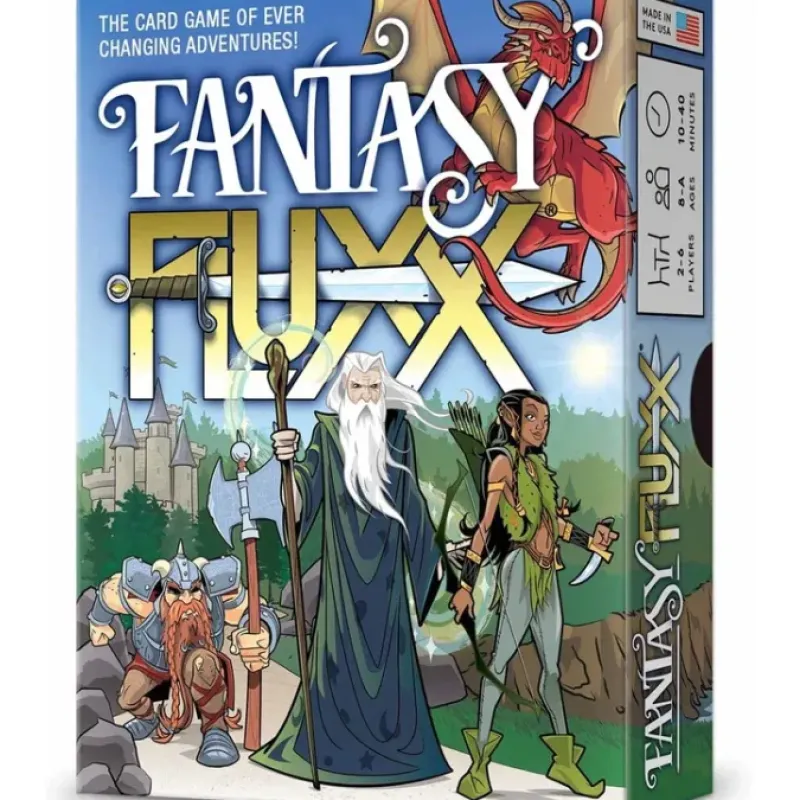 Gather your friends for a party an adventuring party, that is! Set off on a classic quest with your faithful companions: the Helpful Elf, the Dwarven Warrior, the Gallant Swordsman, and, of course, the Wise Old Wizard. Learn from the Cranky Magic Teacher how to use your Wand to cast spells like Invisibility or Fireball! You may need them as you encounter the Dreaded Pirate, or when you find out that the Captured Princess is actually the Mother of Dragons! Will you and your fantasy favorites survive the Final Showdown with the Dark Lord? Find out when you play Fantasy Fluxx!