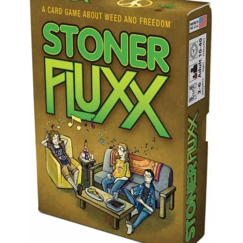 Stoner Fluxx is a marijuana-themed version of the hit card game Fluxx – it’s a game about toking with your friends, getting the munchies, and changing the rules. Back by popular demand, this bigger, bolder edition features 16 new cards (including three Creepers: Munchies, Dry Spell, and The Mooch) with new color artwork in a nicer, larger box.