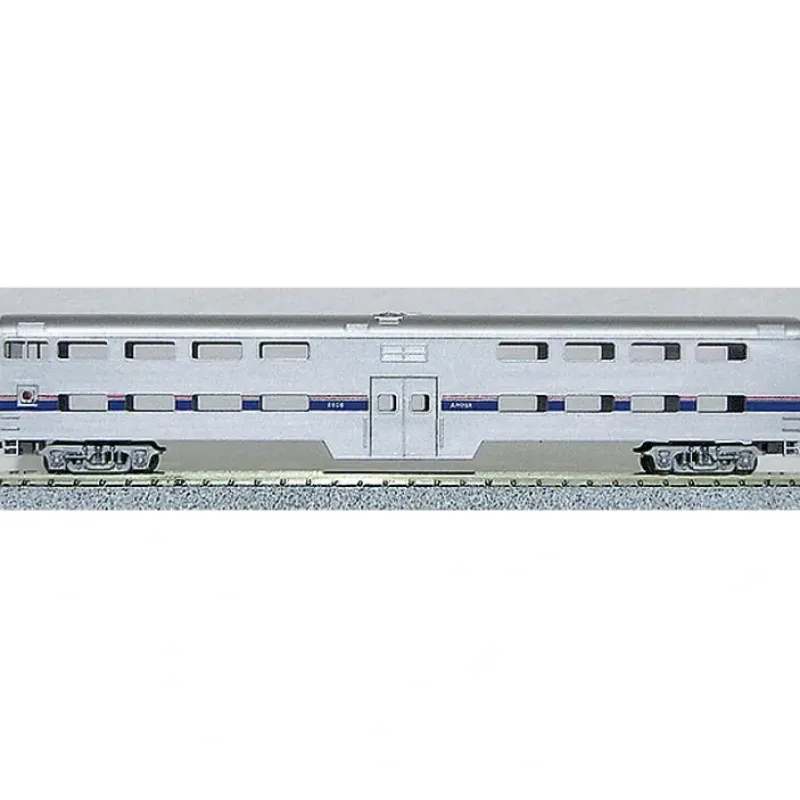This is a Con-Cor 223-40541 N Scale Pullman-Standard Smooth Side Bi-Level Commuter Cab Car Amtrak Phase IV Ready-to-run passenger cars feature painted and lettered injection-molded plastic bodies, metal weights and trucks with metal wheelsets. Cab cars feature end-of-car operator’s cab details.