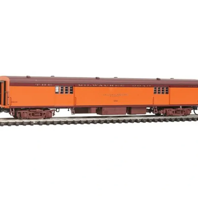 This is a Fox Valley Models 282-40082 N Scale Milwaukee Road 1935-Built Express Car – Ready to Run Milwaukee Road #1111 (orange, maroon, brown Roof) Racing priority express shipments, these cars were originally assigned to the 1935 Hiawatha, and served the Milwaukee Road for many years after. The models feature finely molded bodies, accurate paint and lettering, metal wheelsets and wire grab irons, plus Micro-Trains couplers.