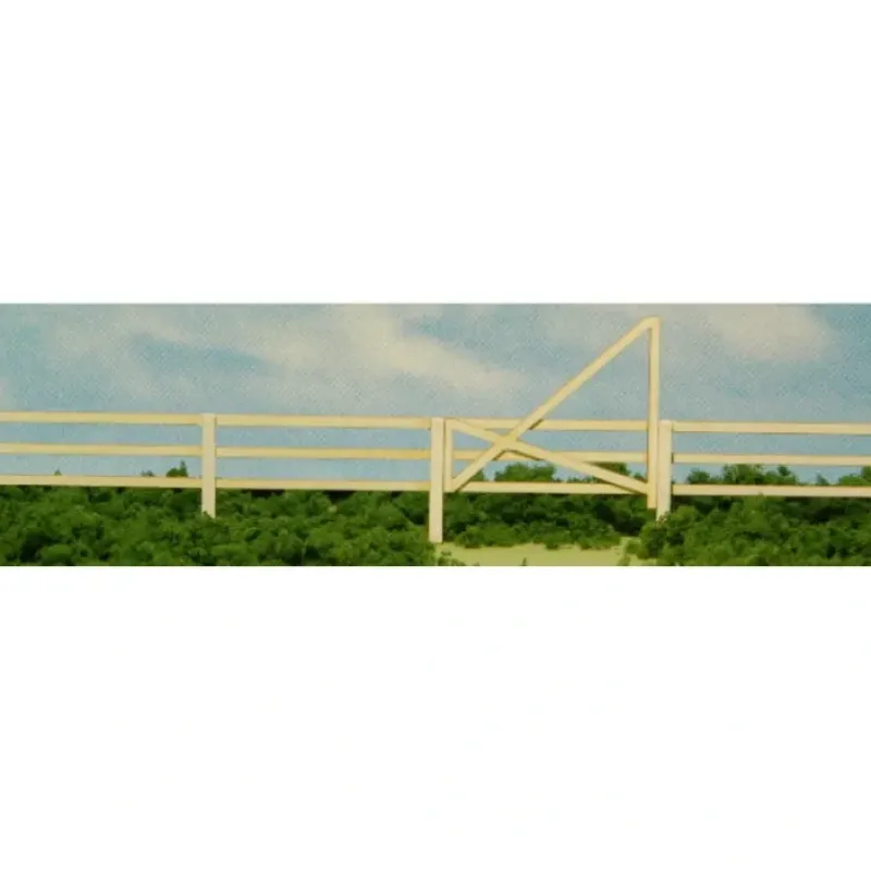 This is a GCLaser 19086 HO Scale 3-Slat Fence with 3 Gates Laser-Cut Matboard & Wood Kit – 50 1.2m. Detail rural scenes with this kit. Designed for quick and easy assembly, it features laser-cut two-ply mat board with wood posts and parts to build three gate sections.