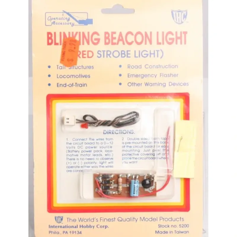 Theis Red bulb blinks when hooked up to a 12 volt power supply. Use this for tall structures, Locomotives, EOTD, Emergency flashers, etc.