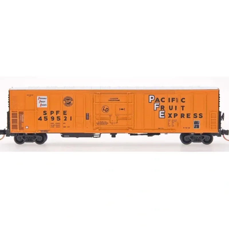This is an Intermountain Railway Company 85-68813 N Scale R-70-20 Mechanical Reefer – Ready to Run Pacific Fruit Express SPFE (orange, white, black, Perishable Freight Logo) Features finely molded detail, prototypical cushion underframe versions, etched-metal details, sharp paint and lettering and Intermountain metal wheelsets.