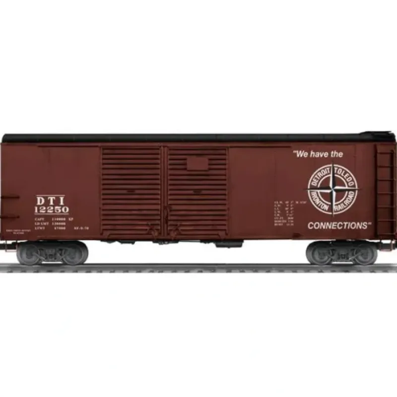 This is Lionel 6-17739 DT&I Round Roof DD Boxcar. Detroit, Toledo & Ironton scale round-roof boxcar #12250. NEWLY TOOLED ROUND-ROOF BOXCARS. In the early 1930s, Pennsylvania developed a new round roof style of boxcar that allowed for a taller 10 inner height and increased overall loading volume. The largest number of them were class X31A boxcars, identified most clearly by a distinctive non-flush inset where the car sides met the rounded roof.