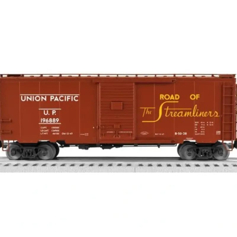 Here is a Lionel 6-27899 O Gauge Union Pacific PS-1 Boxcar #196889. This freight car features a durable plastic construction, die-cast metal sprung trucks, metal wheels and axles, metal frame, separately applied metal underframe details, operating knuckle couplers, box loads in interior, and opening 6′ Youngstown-style doors.