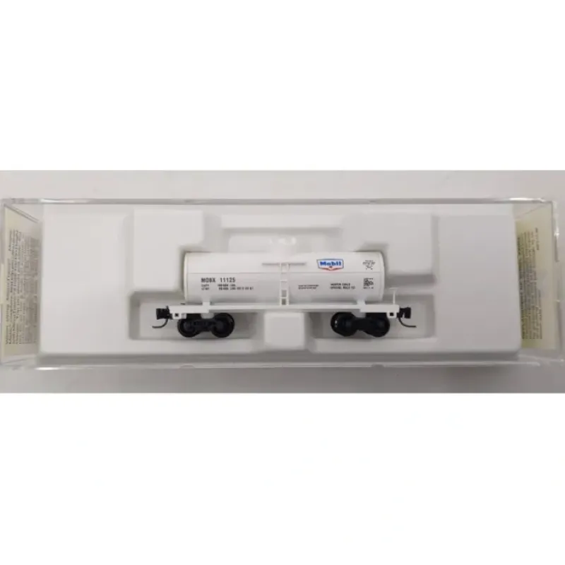 Here is a Micro-Trains 14410-2 Z Scale Mobil Single Dome Tank Car #11125. This freight car features a durable plastic construction with plastic trucks, plastic wheels, and knuckle couplers.