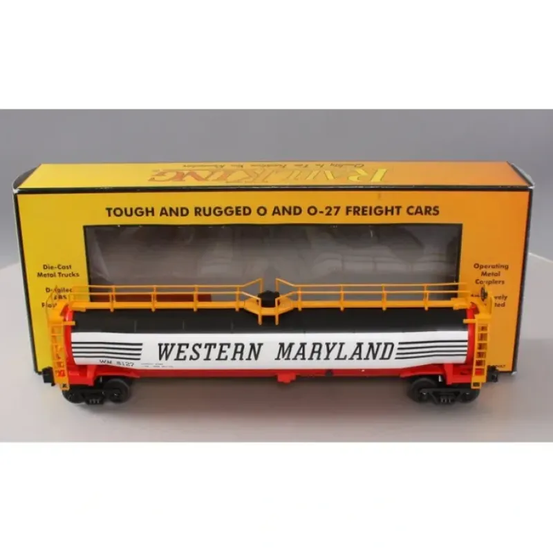 This is an MTH 30-73113 Western Maryland 33,000 Gallon Tank Car. High quality, traditionally sized RailKing Freight Cars provide detailed bodies and colorful paint schemes for the O Gauge railroader. MTH makes an enormous variety of RailKing Freight Cars, including many different car types and roadnames. No matter what era or part of the country you are modeling, RailKing is sure to have something for you.