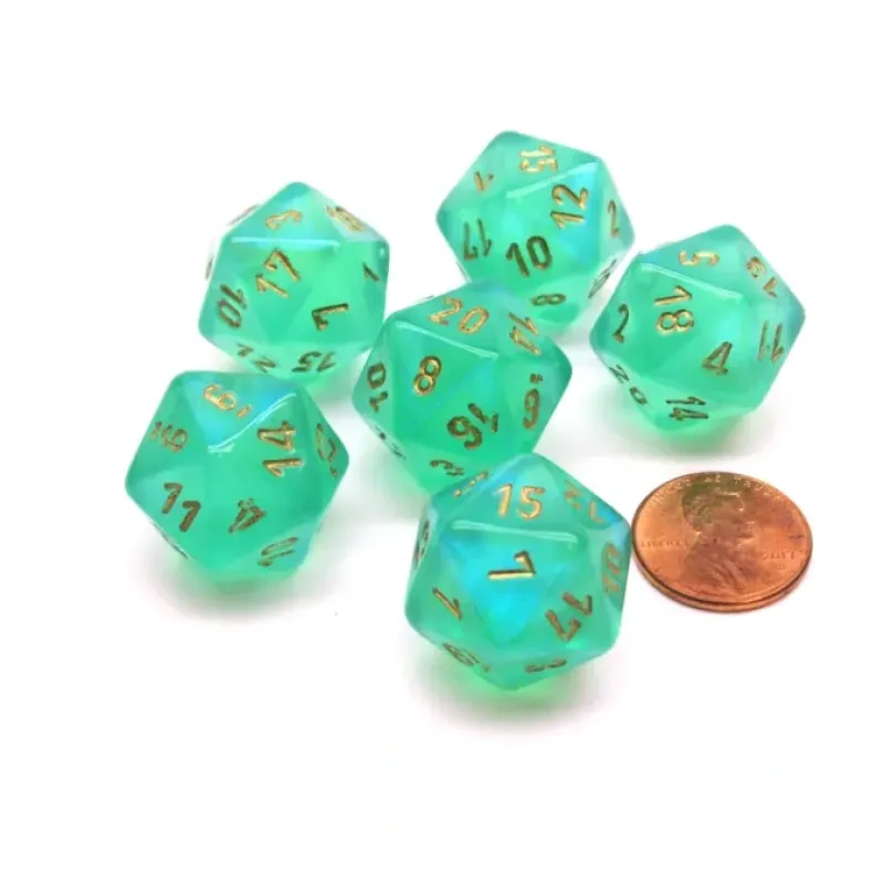 These twenty sided 20mm Borealis dice are numbered from one to twenty with numbers, not pips, and feel great in your hands. These dice are unique, good quality, and great for any dice game! The 6 and 9 have lines under them to help differentiate the two numbers.