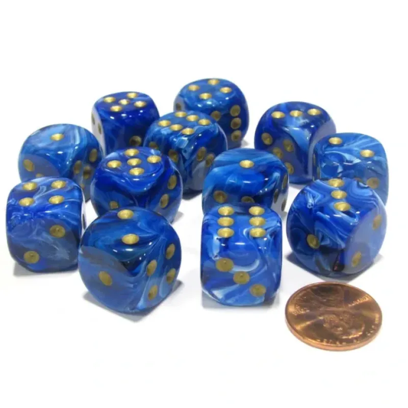 Dice-Vortex 16mm D6 Chessex Dice Block (12 Dice) – Blue with Gold Pips – Your Source for Gaming Essentials
