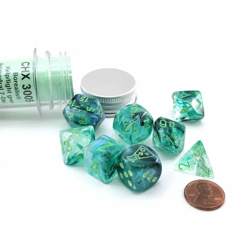 Lab Dice 6 are sets of 7 standard sized polyhedral dice plus a bonus commemorative die, perfect for role playing games. Each set contains one D20, one D12, two D10 (00-90 and 0-9), one D8, one D6, one D4, and one commemorative pipped D6.