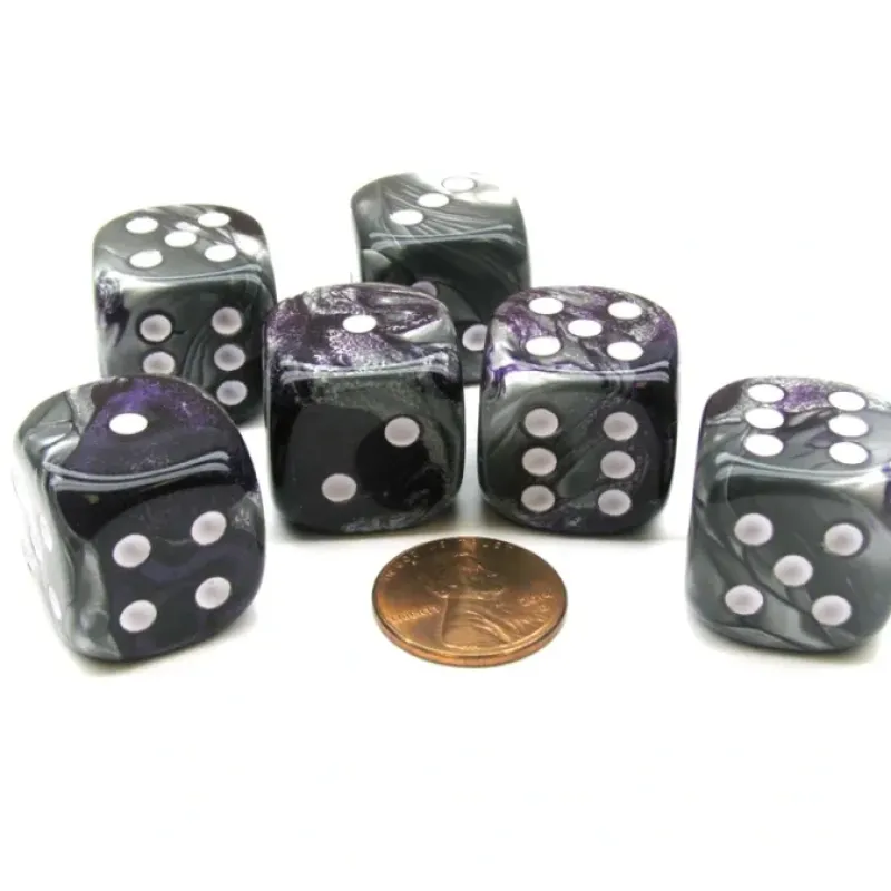 Dice>Gemini 20mm Big D6 Chessex Dice, 6 Pieces – Purple-Steel with White Pips – Your Source for Gaming Essentials