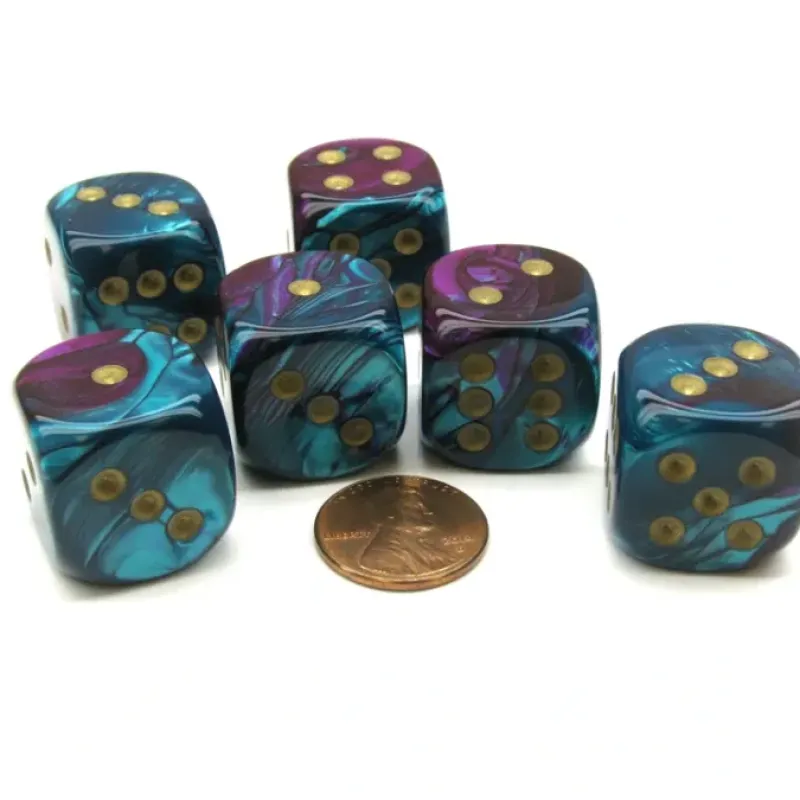Dice>Gemini 20mm Big D6 Chessex Dice, 6 Pieces - Purple-Teal with Gold Pips - Your Source for Gaming Essentials
