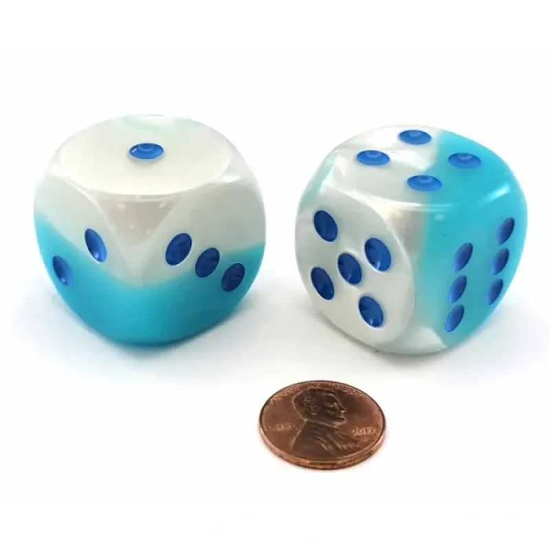Dice>Luminary Gemini 30mm Large D6 Dice, 2 Pieces – Pearl Turquoise-White with Blue – Your Source for Gaming Essentials