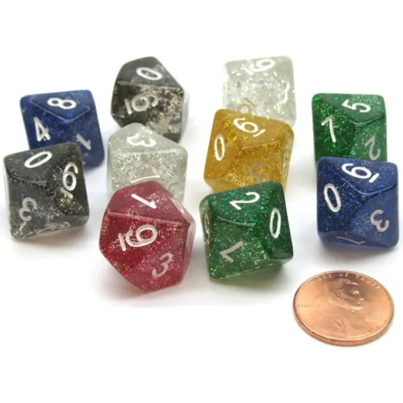 Dice>Pack of 10 D10 Glitter 10-Sided Dice – Assorted Colors – Your Source for Gaming Essentials