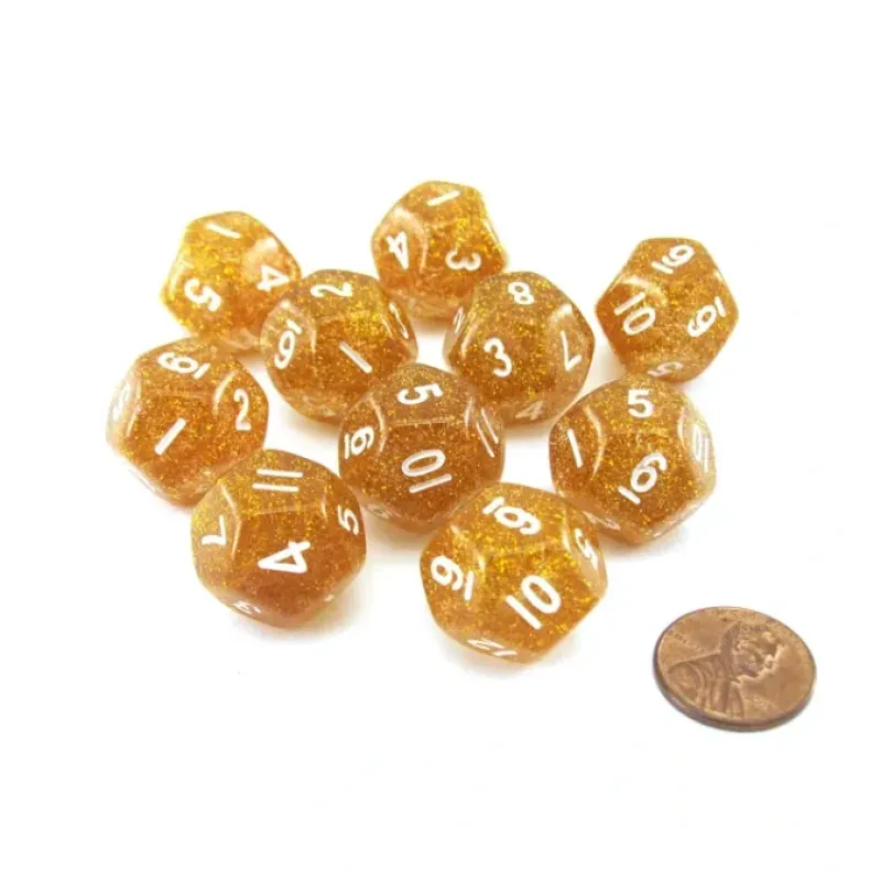 These twelve sided 20mm glitter dice are numbered from one to twelve with numbers, not pips, and feel great in your hands. These glitter dice are sparkly, good quality, and great for any dice game! The 6 and 9 have decimals in the lower right corner of their respective sides to help differentiate the two numbers.