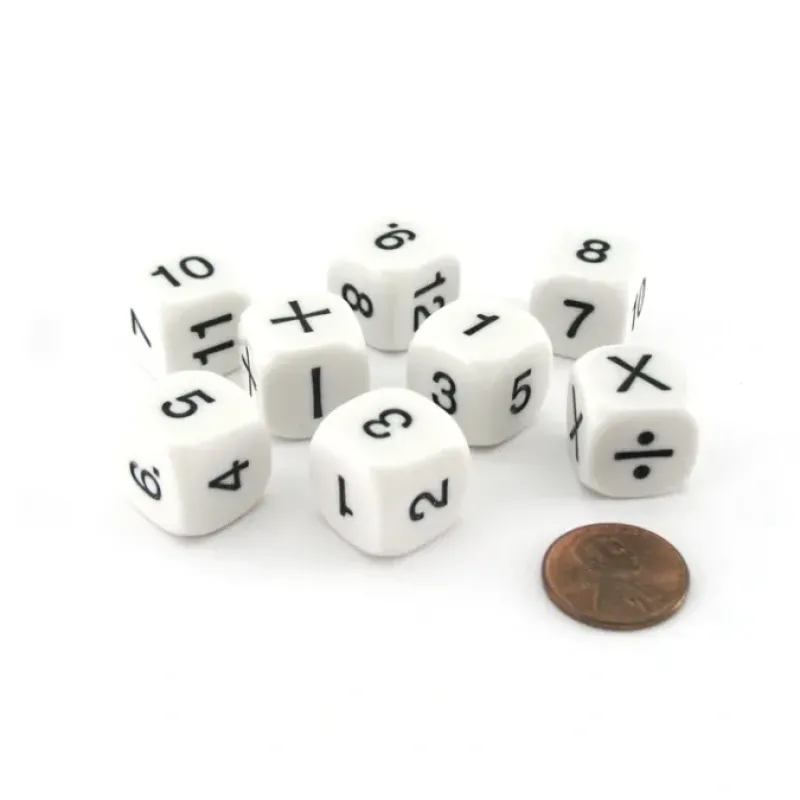 Dice>Pack of 8 D6 16mm Math Set (2) with Numbers and Operators – Your Source for Gaming Essentials