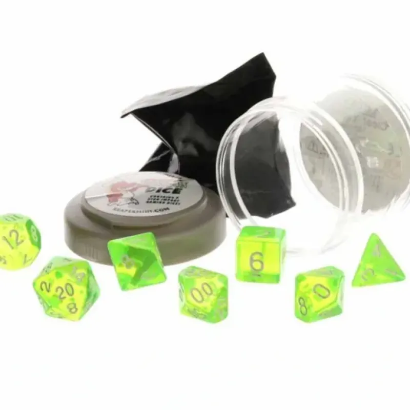 LuckyClear Neon Green – 7-Piece Polyhedral Dice Set