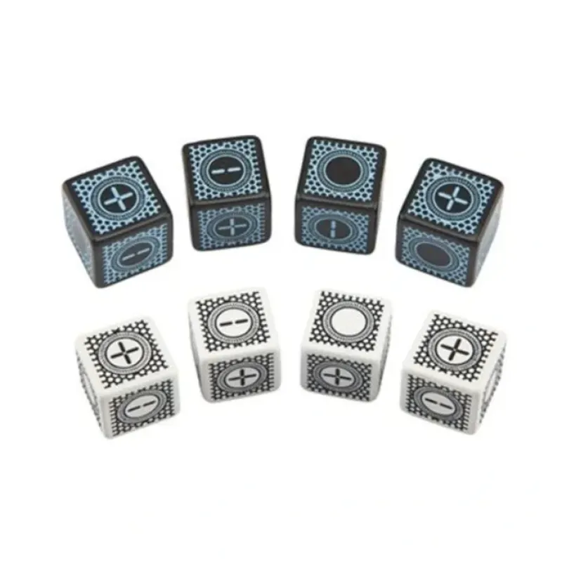 Dice set for any game that uses Fudge/Fate system with an science-fiction or cyberpunk setting. The set will come in 4x Black/Blue + 4x random color.